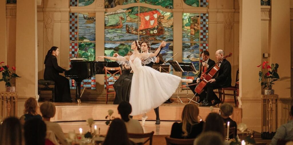 Посещение «Вечеров Чайковского» возможно по предварительному бронированию. Каждый такой вечер сопровождается выступлениями артистов балета и оперы, а также живым симфоническим звучанием. Музыкальную часть вечера дополняют фрагменты классического репертуара — «Белое адажио» из балета «Лебединое озеро» и «Вальс № 7», органично вписанные в общую атмосферу ужина.