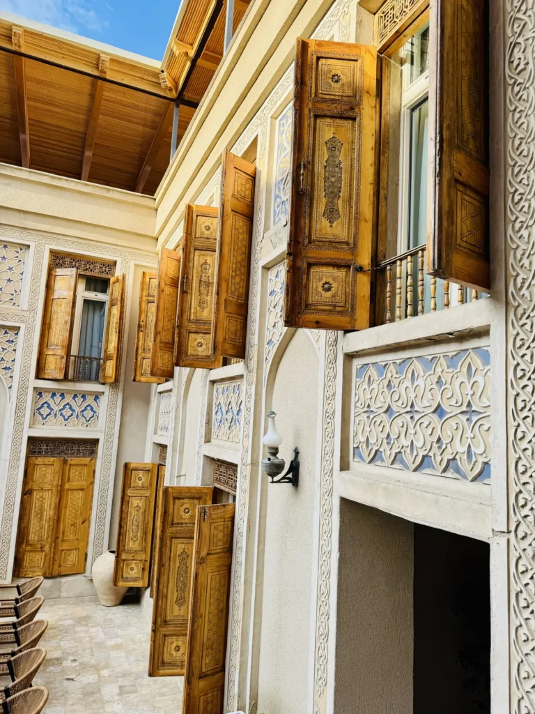 Во время прогулки по старой Бухаре обязательно загляните в ресторан Ayvan при бутик-отеле Lyabi House, чтобы ощутить настоящую аутентичность города. Ресторан расположен в бывшем еврейском купеческом доме. Его главная ценность — подлинный айван (летняя терраса) с уникальной росписью по ганчу (резному гипсу) и дереву, сохранившейся с позапрошлого века.